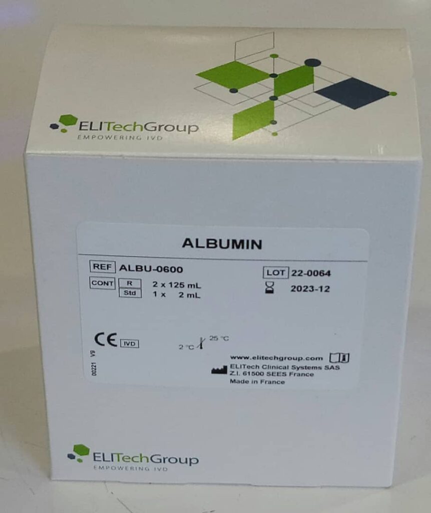 Albumin is mainly synthesized by the liver and represents approximately 50% of plasma proteins. Albumin’s primary function is the maintenance of oncotic pressure and the transport of a large number of compounds. The measurement of serum or plasma albumin is mostly indicated to help in diagnosing and monitoring diseases with protein loss or decreased synthesis (nephrotic syndrome, gastrointestinal loss, and hepatic insufficiency), acute and chronic inflammation, and severe malnutrition.